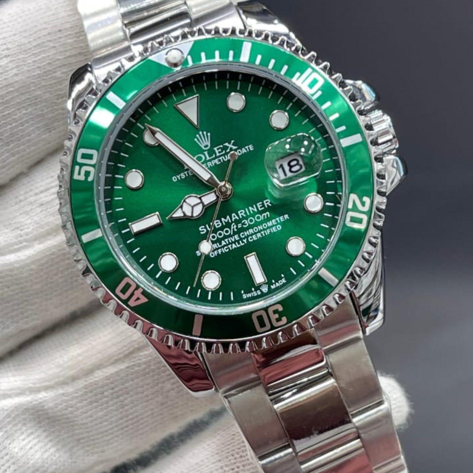 The Rolex Submariner – Green Hulk Edition is a watch that commands attention. With its vibrant green dial and bezel, solid stainless steel bracelet, and dive-inspired design, it’s both rugged and refined. Luminous markers ensure readability in all conditions, while the quartz movement delivers accuracy you can rely on. Whether you’re at a formal gathering or out on an adventure, this watch makes a powerful statement.